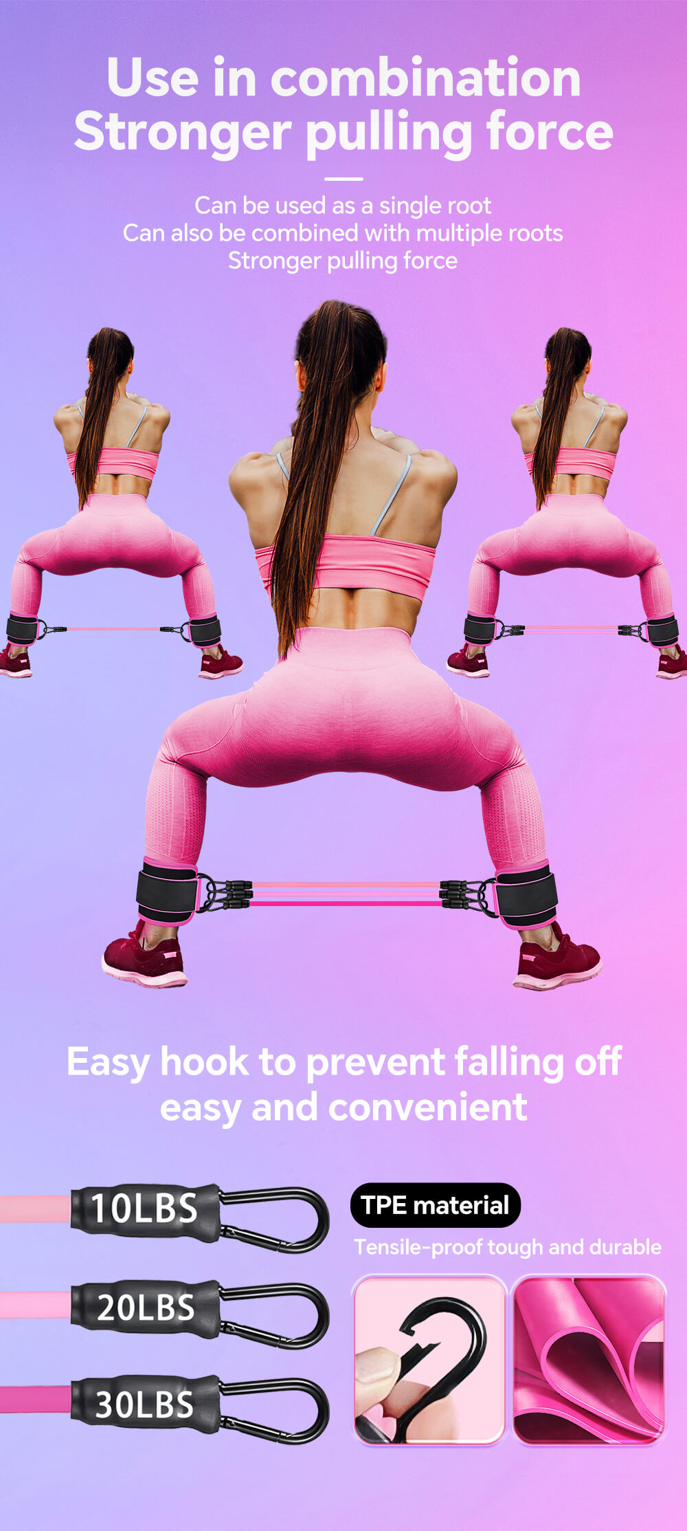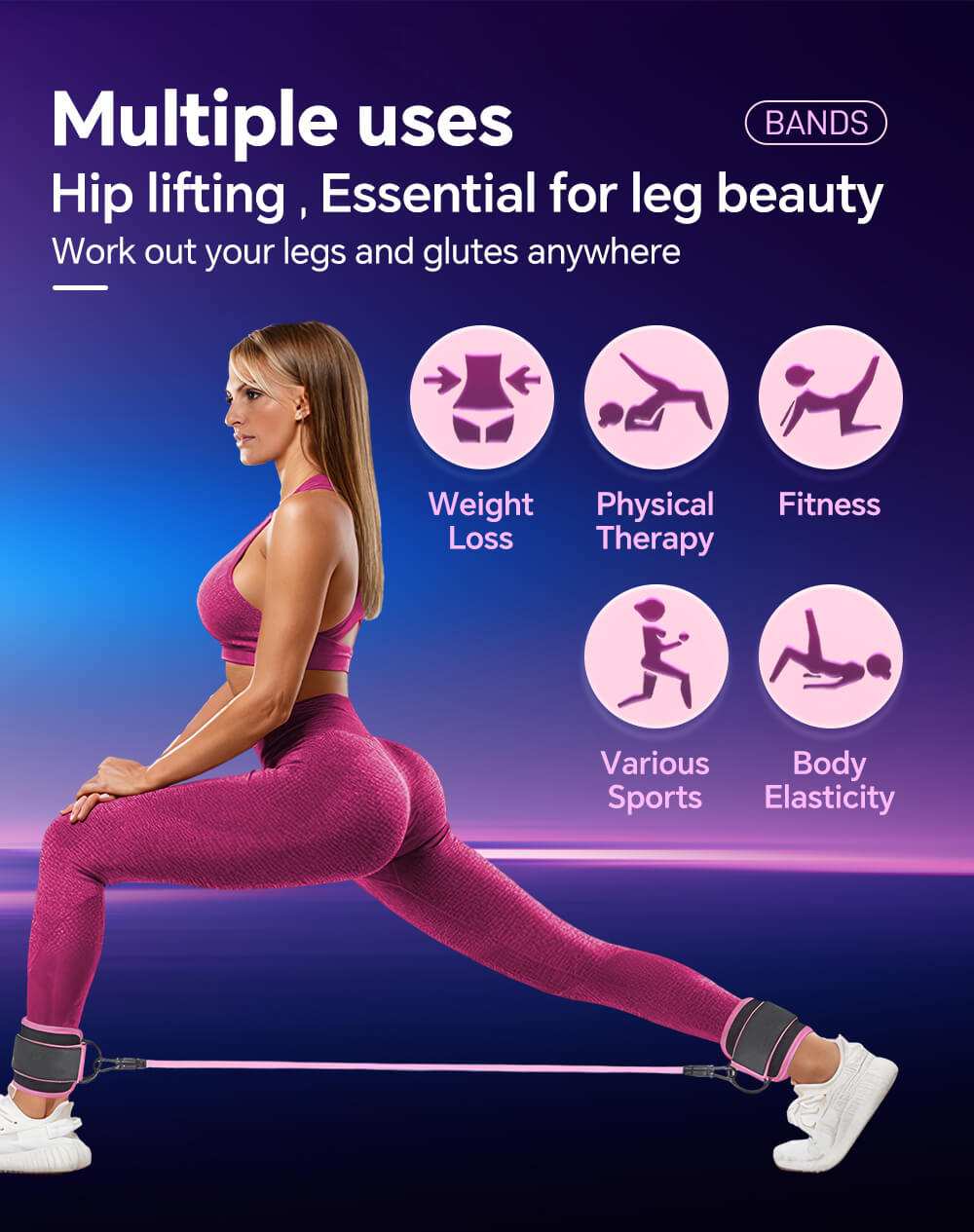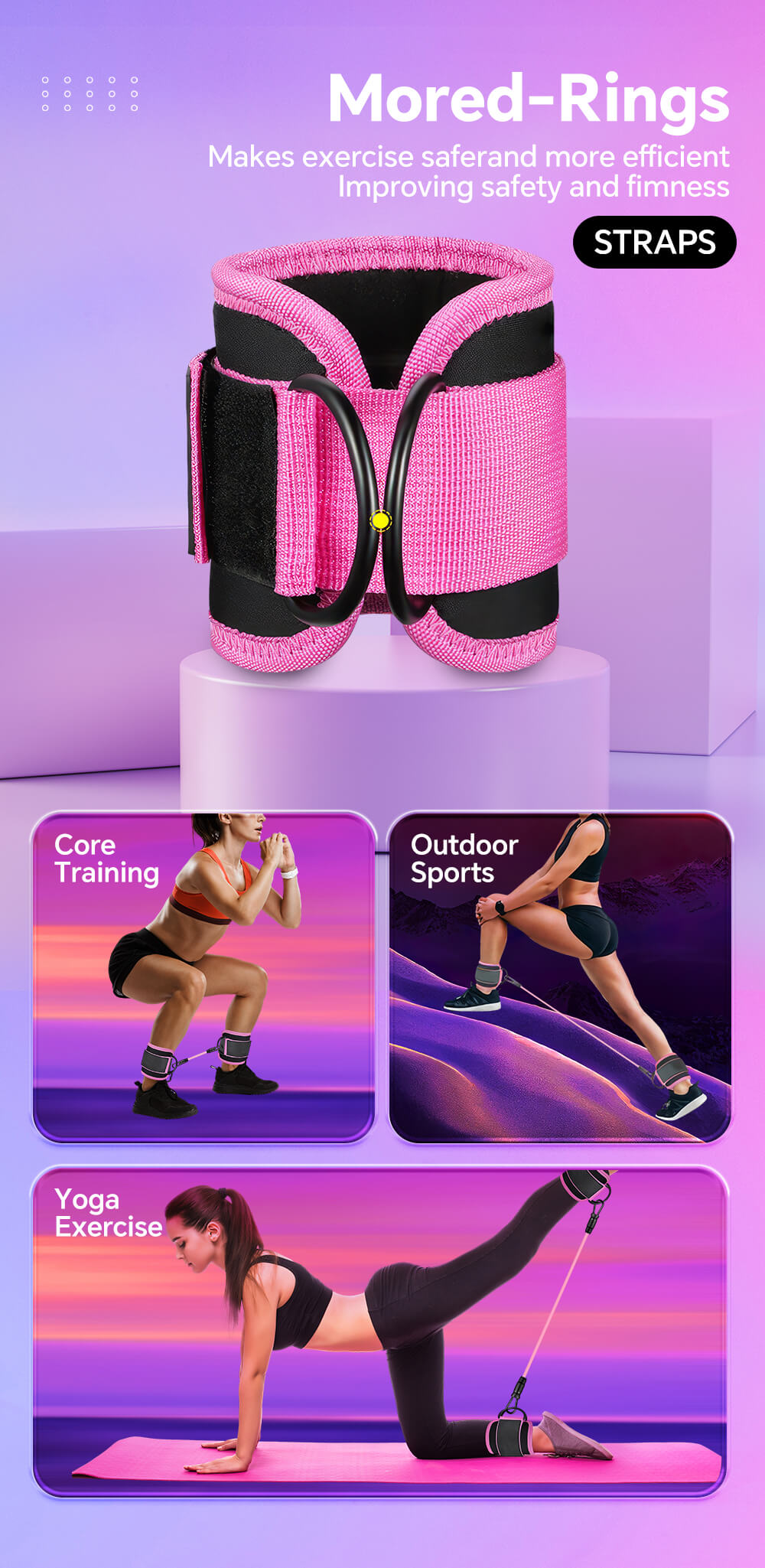 These ankle resistance bands with cuffs provide a versatile solution for working out various muscle groups. including the legs. buttocks. and hips. They are specifically designed for kickbacks. hip thrusts. and gluteus training exercises. provide an added challenge to your workouts. helping you achieve a more sculpted and defined lower body.- Adjustable and Secure Fit: The ankle cuffs are equipped with straps that can be easily adjusted to fit different ankle sizes.