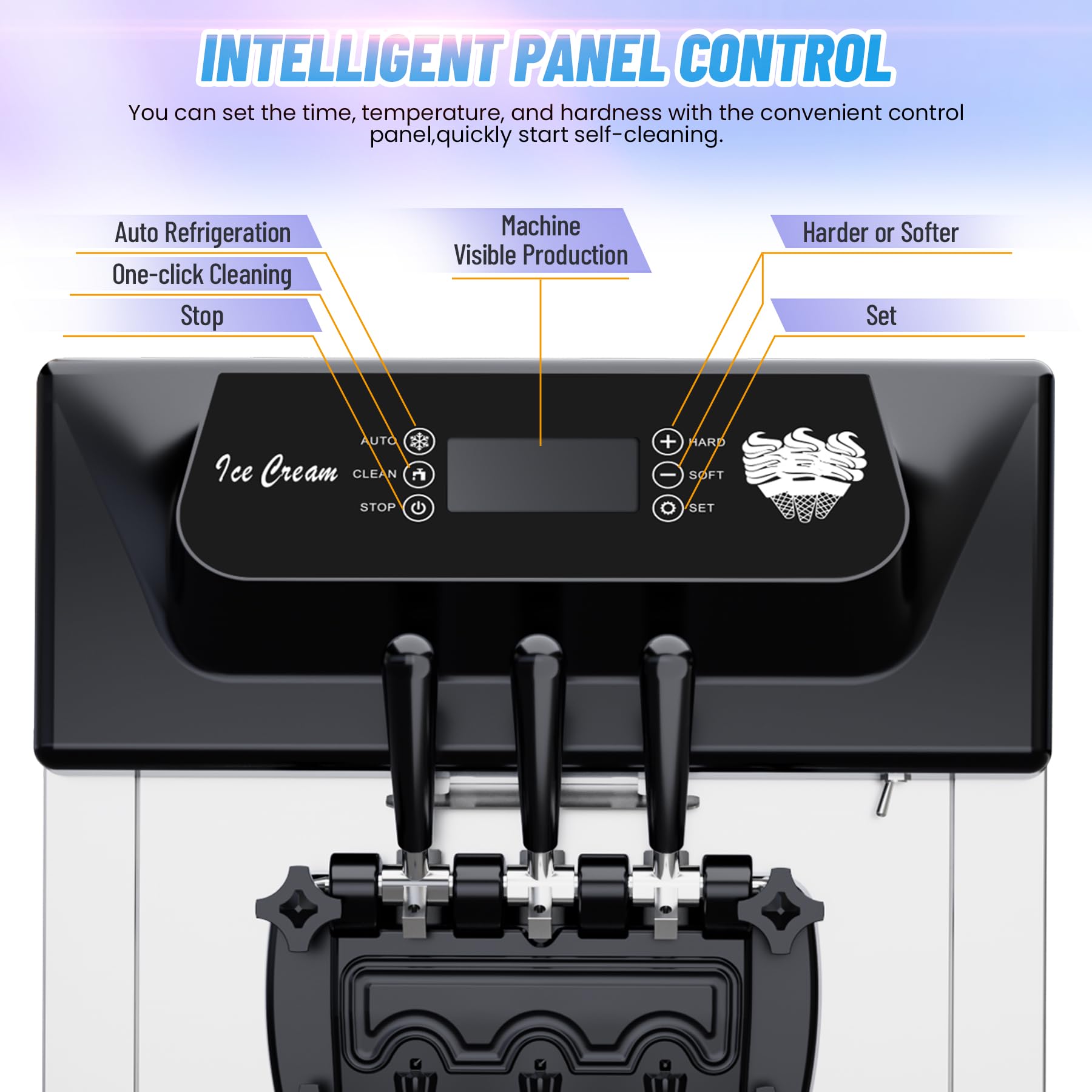 The Commercial Soft Serve Ice Cream Machine brings professional ice cream parlor quality to your business or home. With its 2+1 flavor system and high-capacity production. you can serve a variety of delicious soft serve creations to delight your customers or guests.