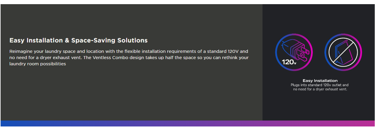 50% more energy efficient drying** with Ventless Heat Pump (**Efficiency rating as compared to the requirements for ENERGY STAR qualification for standard electric dryers)