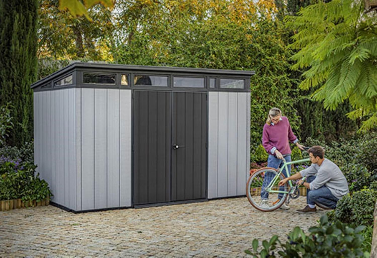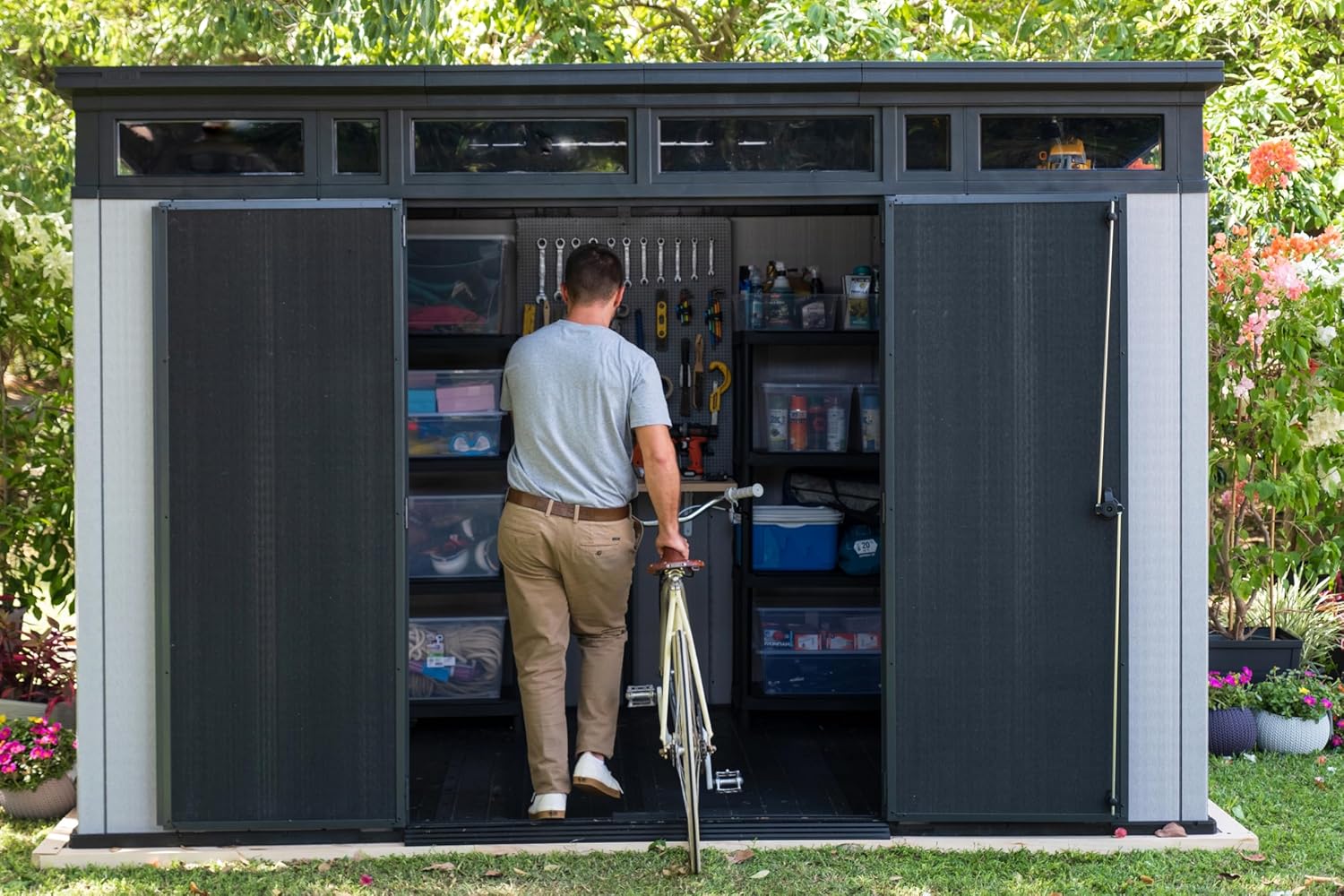 - Customize your shed with paintable and drillable DUOTECH walls