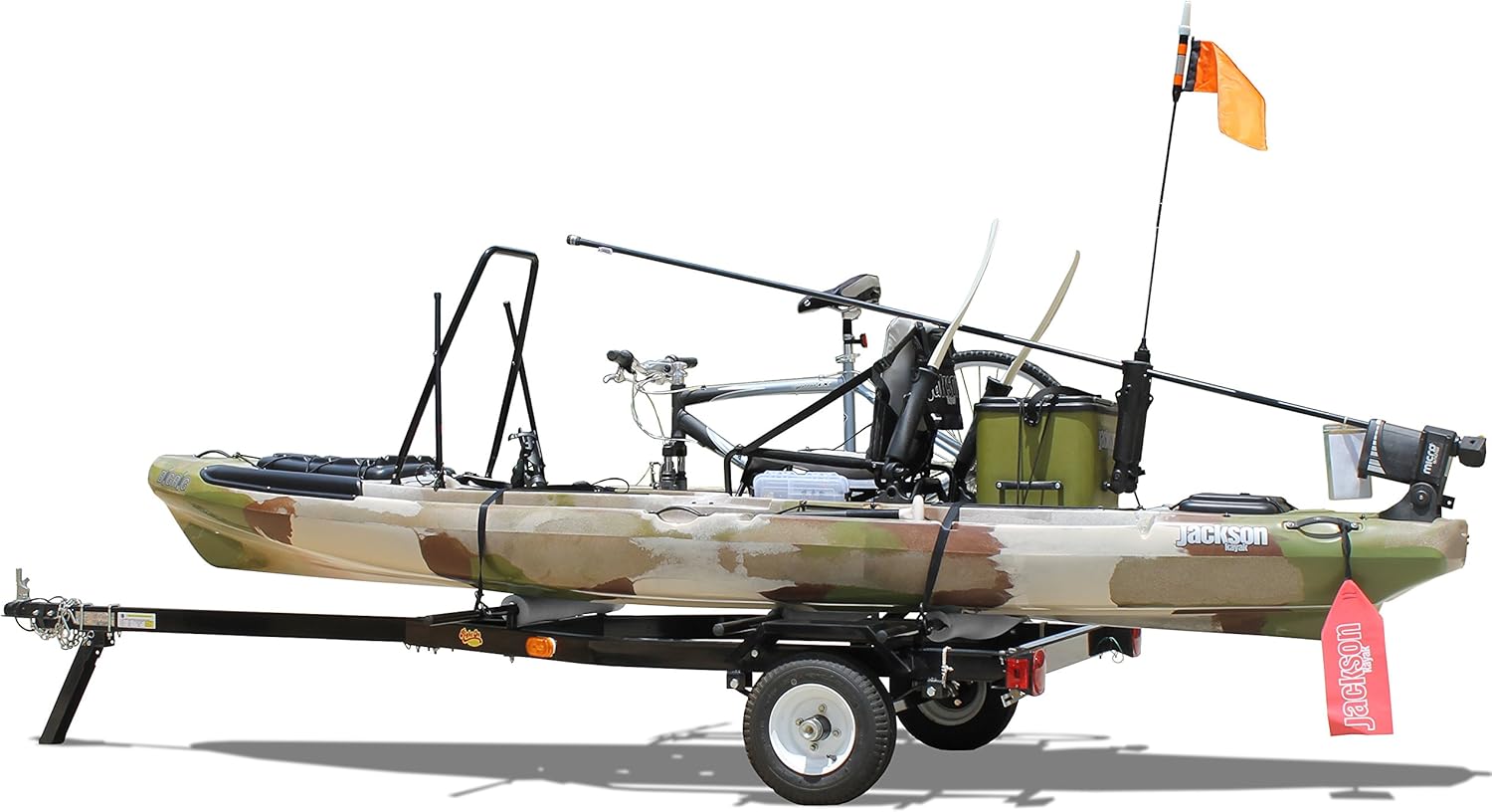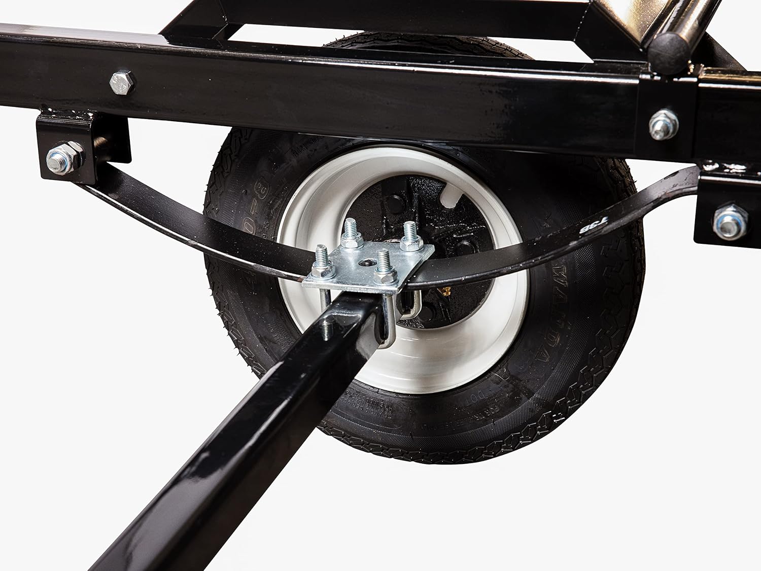 New for 2023! Improved corrosion resistance through new powder coat process. Larger and stronger 2�� ball hitch coupler. Longer 65�� round crossbars. Simplified and improved trailer light wiring with quick-connects and dedicated grounding wire. Flat washers added to hardware kit. Prefect to put two fishing kayaks side by side. We also have accessories for this trailer like Rack Pads. Bike Racks. cargo boxes. and J-cradles. This is a high-speed trailer ready for interstate travel. Trailer has a super-strong frame but soft leaf spring to protect your load and prevent the trailer from bouncing.